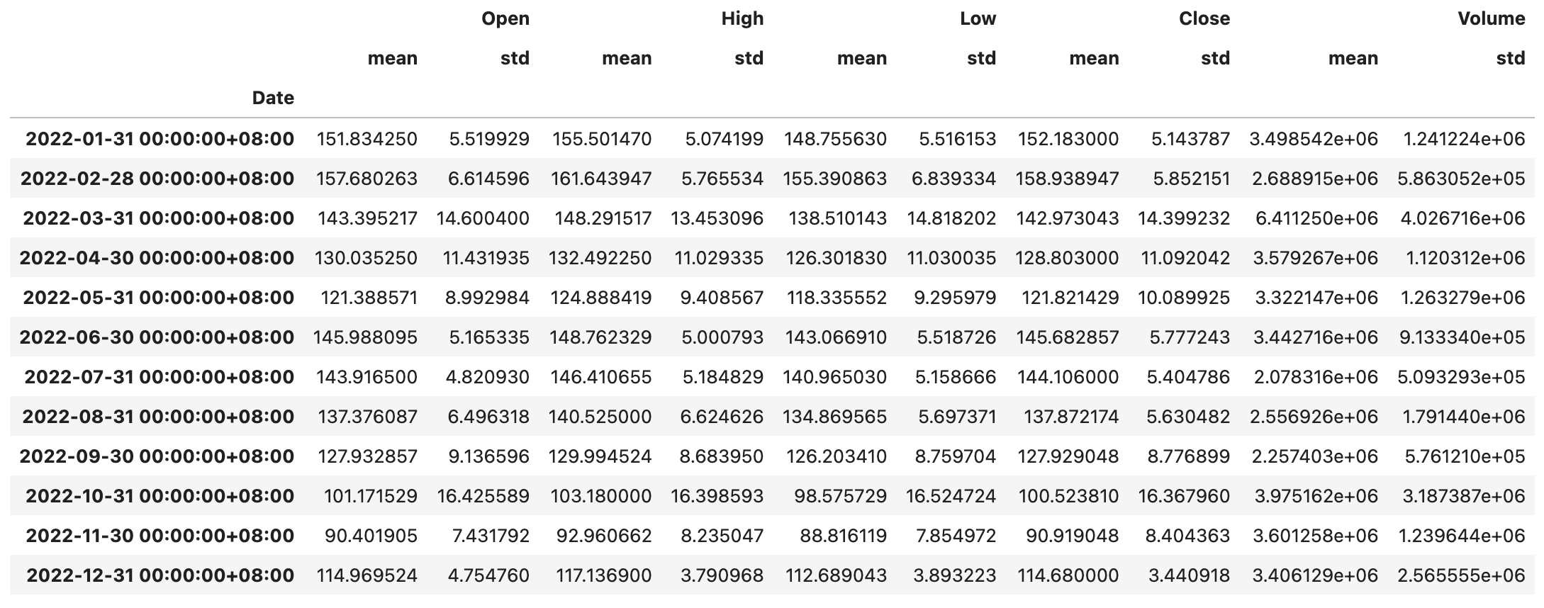 当使用DatetimeIndex索引时,我们也可以通过resample()方法基于时间对数据进行重采样,相当于根据时间周期对数据进行了分组操作,分组之后还可以进行聚合统计,代码如下所示。