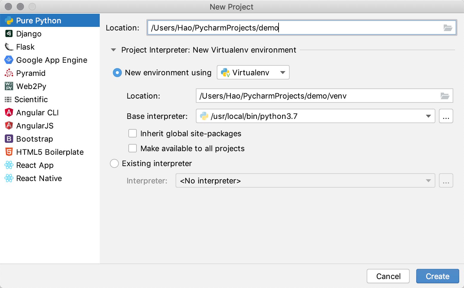 用PyCharm创建项目